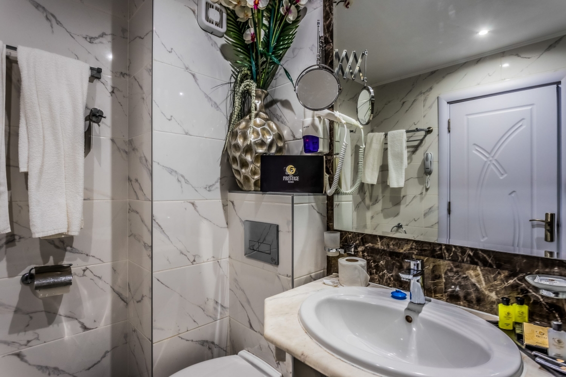 Двойната Семейна стая е с едно помещение със спалня, релакс зона, самостоятелна баня и балкон с градинска мебел. Стаята е оборудвана с климатик, сейф, мини хладилник, електрическа кана, интернет, телевизор със сателитни канали, душ и/или вана в банята, сешоар и тоалетни принадлежности.